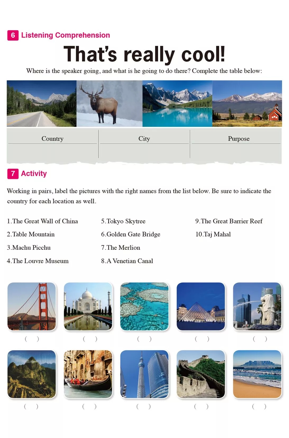 聽力文章是簡短、逼真的情境,使用每個單元的詞彙和習語。 書中包括在聽完每個單元的音軌後需要回答的理解問題。 為了進行更多練習,我們鼓勵教師提出額外的理解問題和/或將這些問題用作課堂討論的主題。